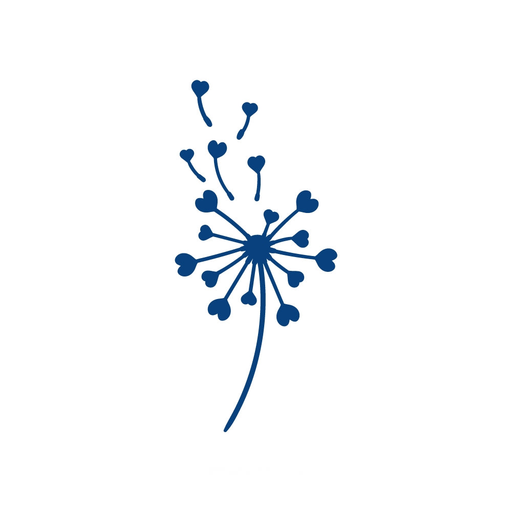 A dandelion made of tiny hearts drifting away — symbolizing hope, dreams, and love set free to find its way.