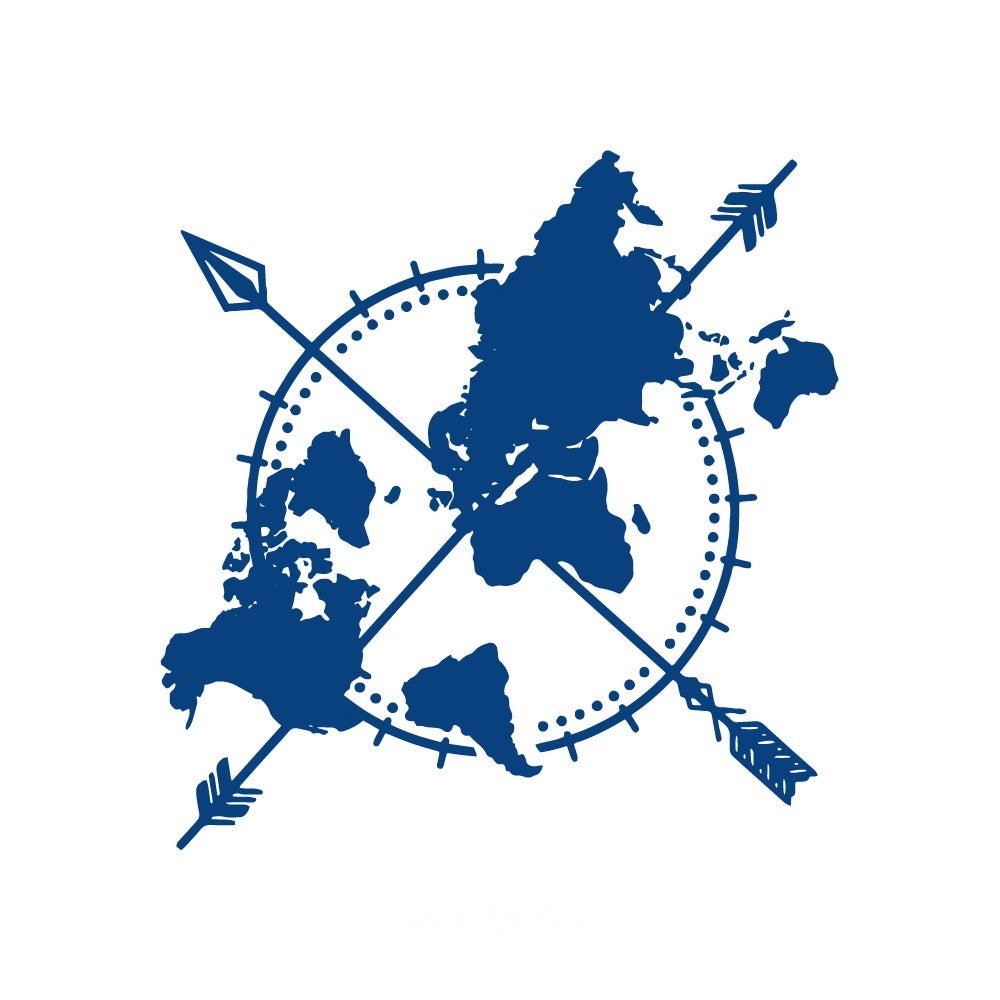 A globe crossed by guiding arrows — a bold symbol of discovery, direction, and the endless spirit of exploration.