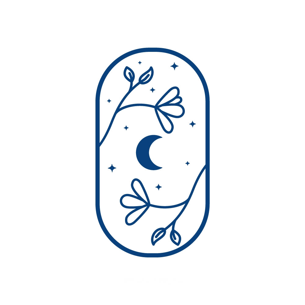 A crescent moon surrounded by stars and budding flowers — symbolizing dreams, renewal, and quiet beauty under the night sky.