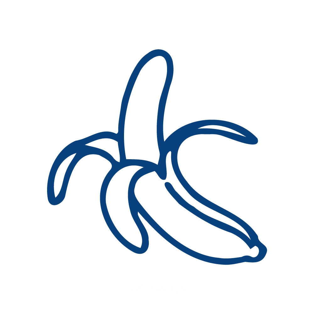 A simple line-art banana half-peeled — symbolizing humor, fun, and not taking life too seriously.