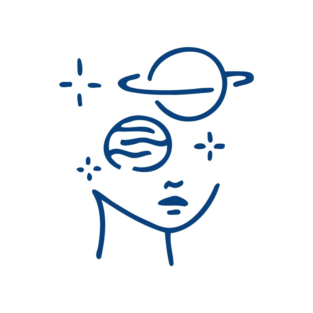 A serene face surrounded by planets and stars — symbolizing imagination, wonder, and the infinite universe within.