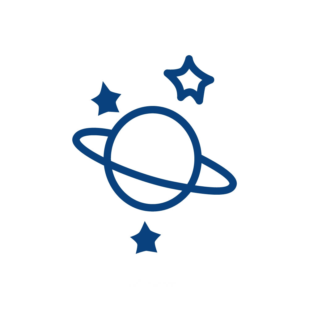 A ringed planet with shining stars — symbolizing exploration, imagination, and the endless universe within.