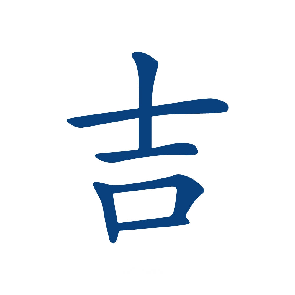 This kanji (吉) symbolizes good luck, blessings, and positive outcomes, often used in charms and celebrations to attract success and happiness.