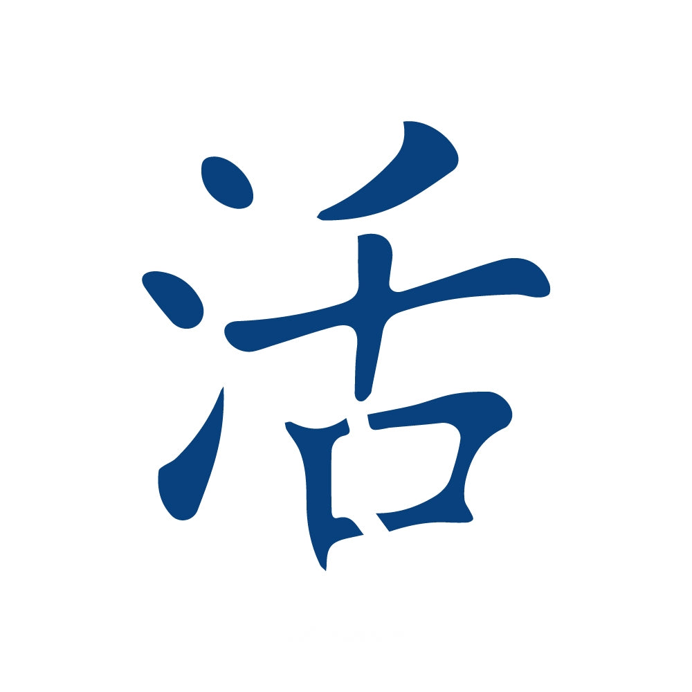 This kanji (活) represents life, energy, and activity, often symbolizing movement, liveliness, and the power of living fully.