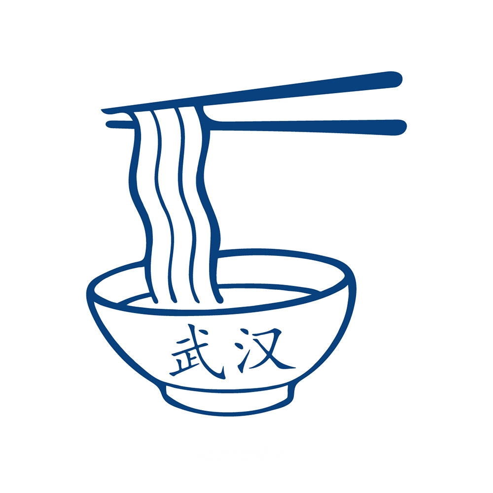 A steaming bowl of noodles lifted by chopsticks, marked with the characters 武汉 (Wuhan) — symbolizing warmth, culture, and authentic Chinese flavor.